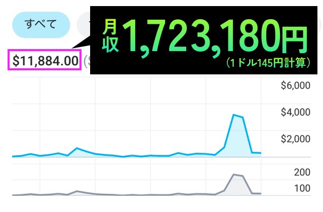 論より証拠、ある65歳の女性インフルエンサーのアカウントの収益管理画面の動画をご覧ください。